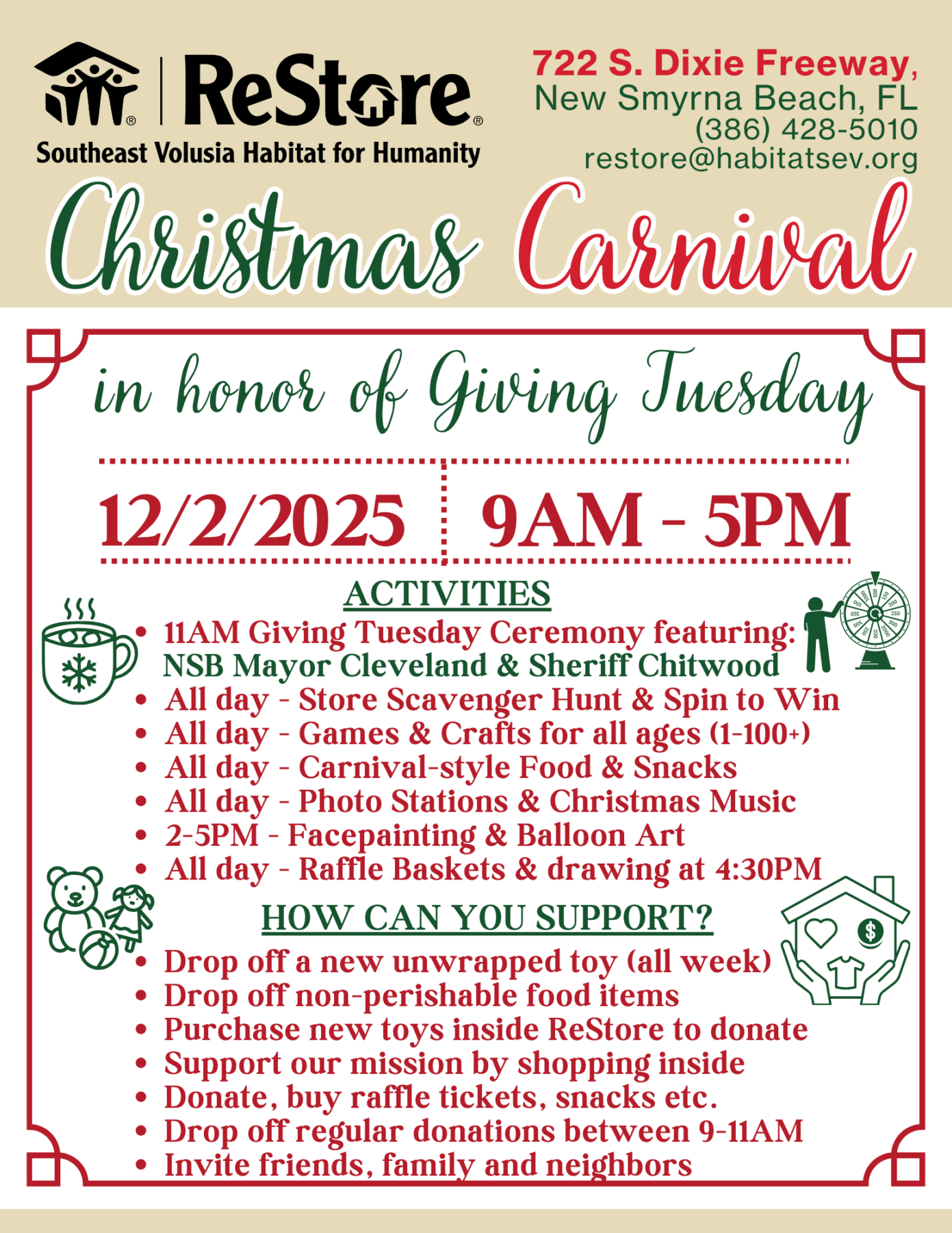 Southeast Volusia Habitat for Humanity Serves the communities of New Smyrna Beach, Edgewater & Oak Hill by helping residents obtain safe, decent, affordable homes through the Habitat home ownership program. Our main office is in Edgewater and the ReStore is in New Smyrna Beach.
